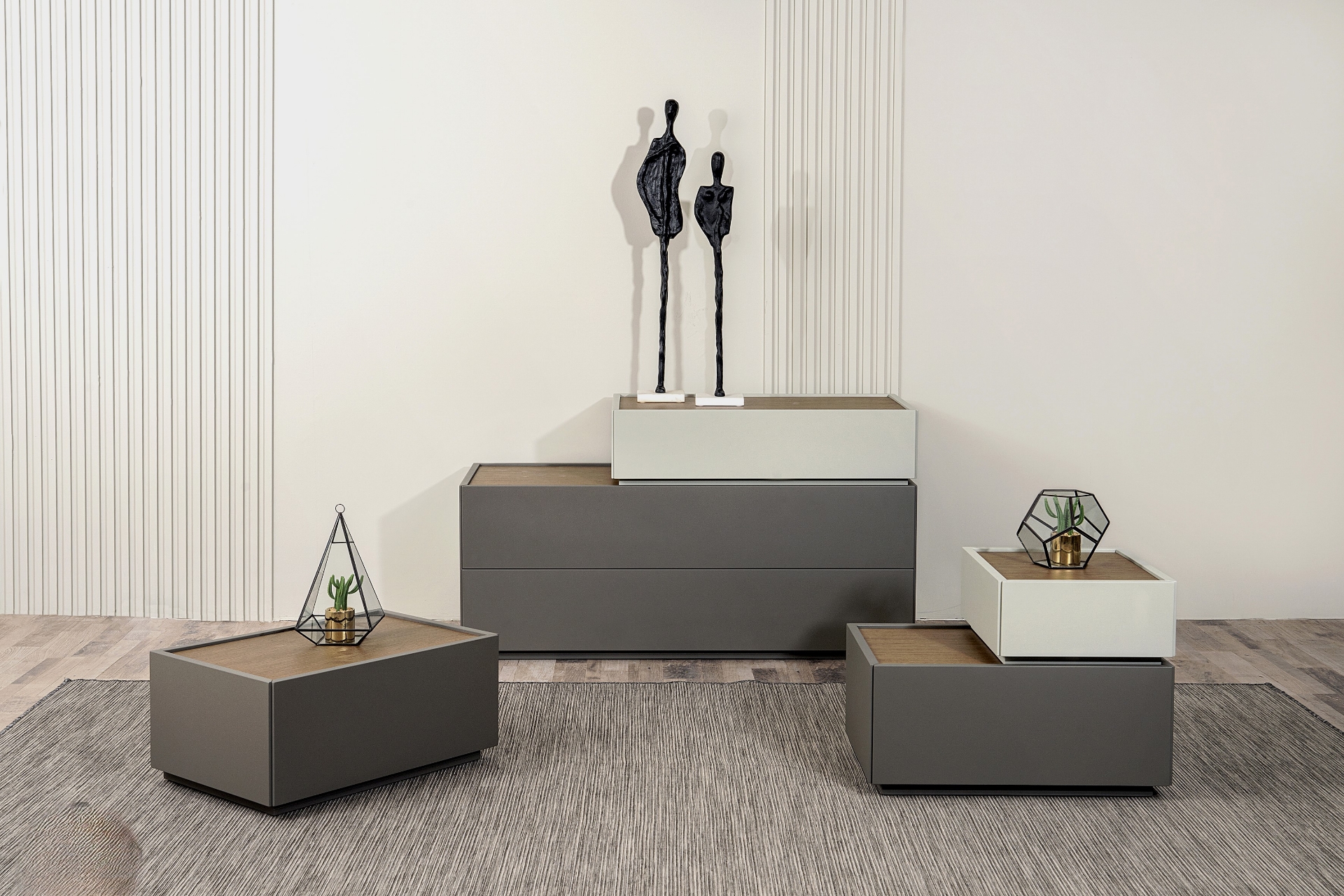 Διαθέτει τρία συρτάρια με ιδιαίτερο χρωματικό παιχνίδι: