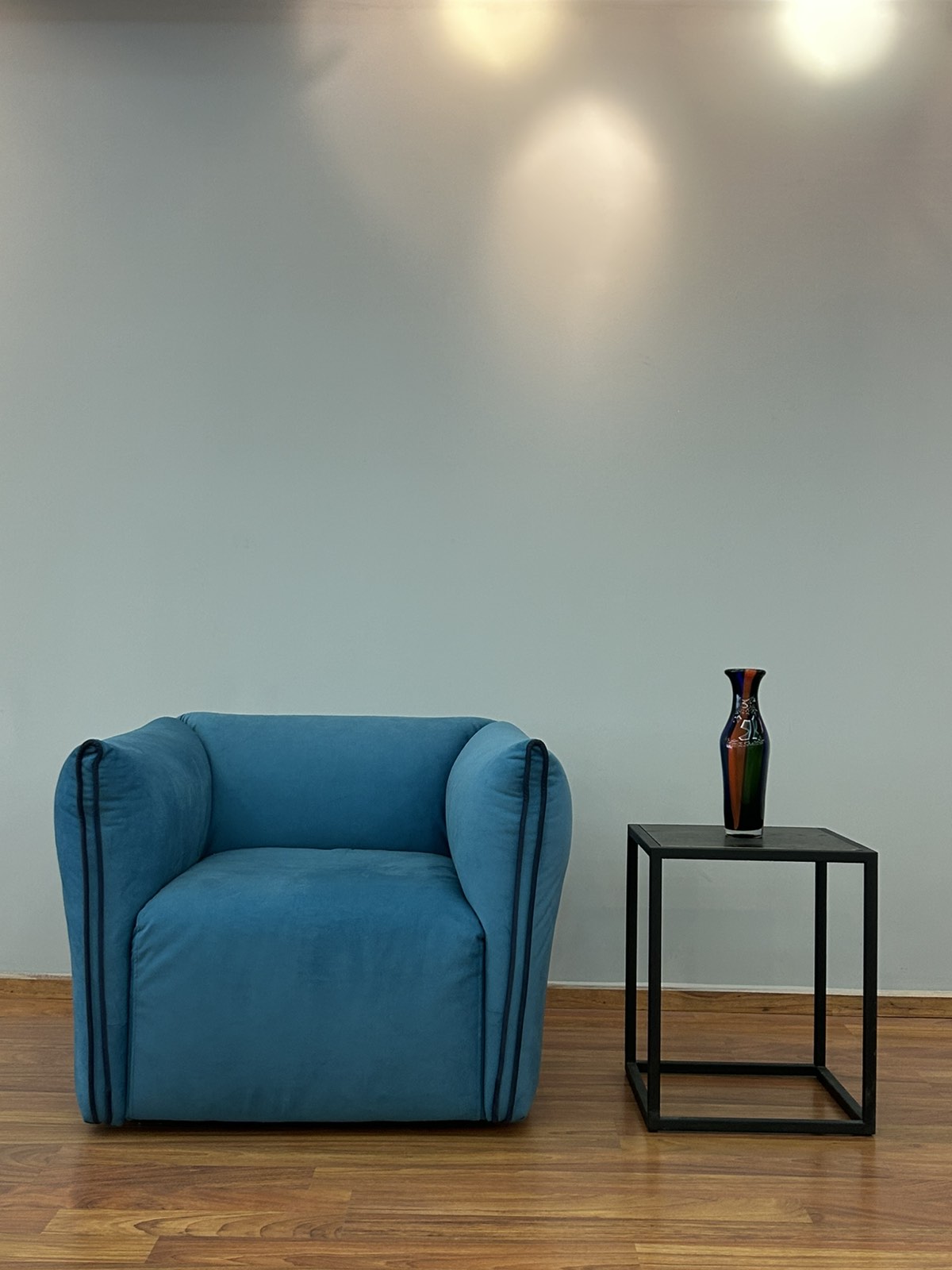 Η χαμηλή πλάτη της δίνει μοντέρνο, “μαζεμένο” προφίλ, ενώ το βαθύ κάθισμα εξασφαλίζει άνεση και χαλάρωση. Το πετρόλ χρώμα λειτουργεί ως statement επιλογή που συνδυάζεται εύκολα με ουδέτερους καναπέδες, ξύλινα τραπεζάκια ή μεταλλικές λεπτομέρειες.