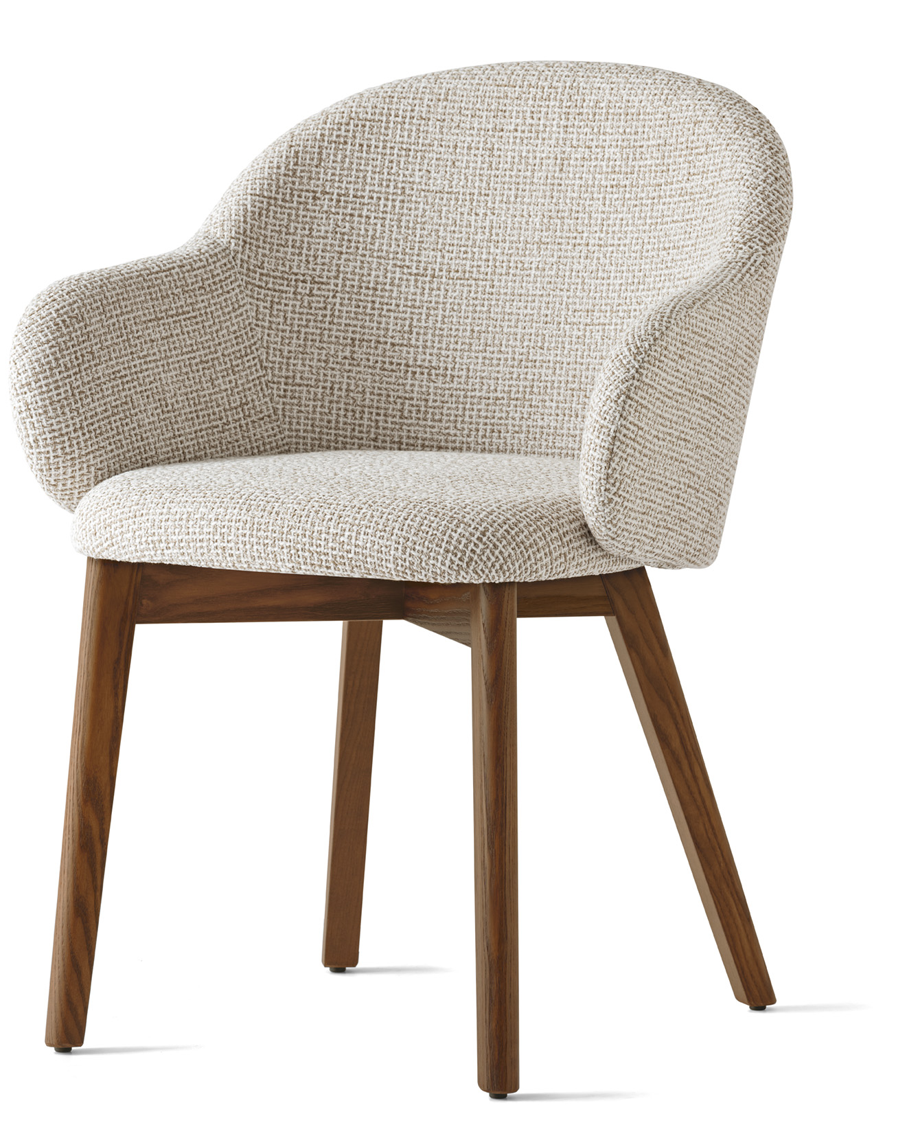 Η καρεκλοπολυθρόνα τραπεζαρίας HOLLY FAB ξεχωρίζει για την εξαιρετική άνεση και τον μοντέρνο σχεδιασμό της. Η καμπυλωτή πλάτη αγκαλιάζει το σώμα προσφέροντας στήριξη, ενώ το πλούσιο μπουκλέ ύφασμα, σε εκρού–μπεζ τόνους και με αδιάβροχη επεξεργασία, δημιουργεί μια αίσθηση ζεστασιάς και χαλάρωσης. Τα πόδια από μασίφ ξύλο σε απόχρωση καρυδιά μελί συμπληρώνουν αρμονικά την εικόνα, προσθέτοντας κομψότητα και φυσικό χαρακτήρα. Ένας ιδανικός συνδυασμός για σύγχρονες τραπεζαρίες που επιθυμούν άνεση, στυλ και λειτουργικότητα. 🟢 Εκθεσιακά 4 τεμάχια – σε προσφορά 🟢 Άμεση παράδοση 🟢 Ιδανική για άνετους και κομψούς χώρους τραπεζαρίας