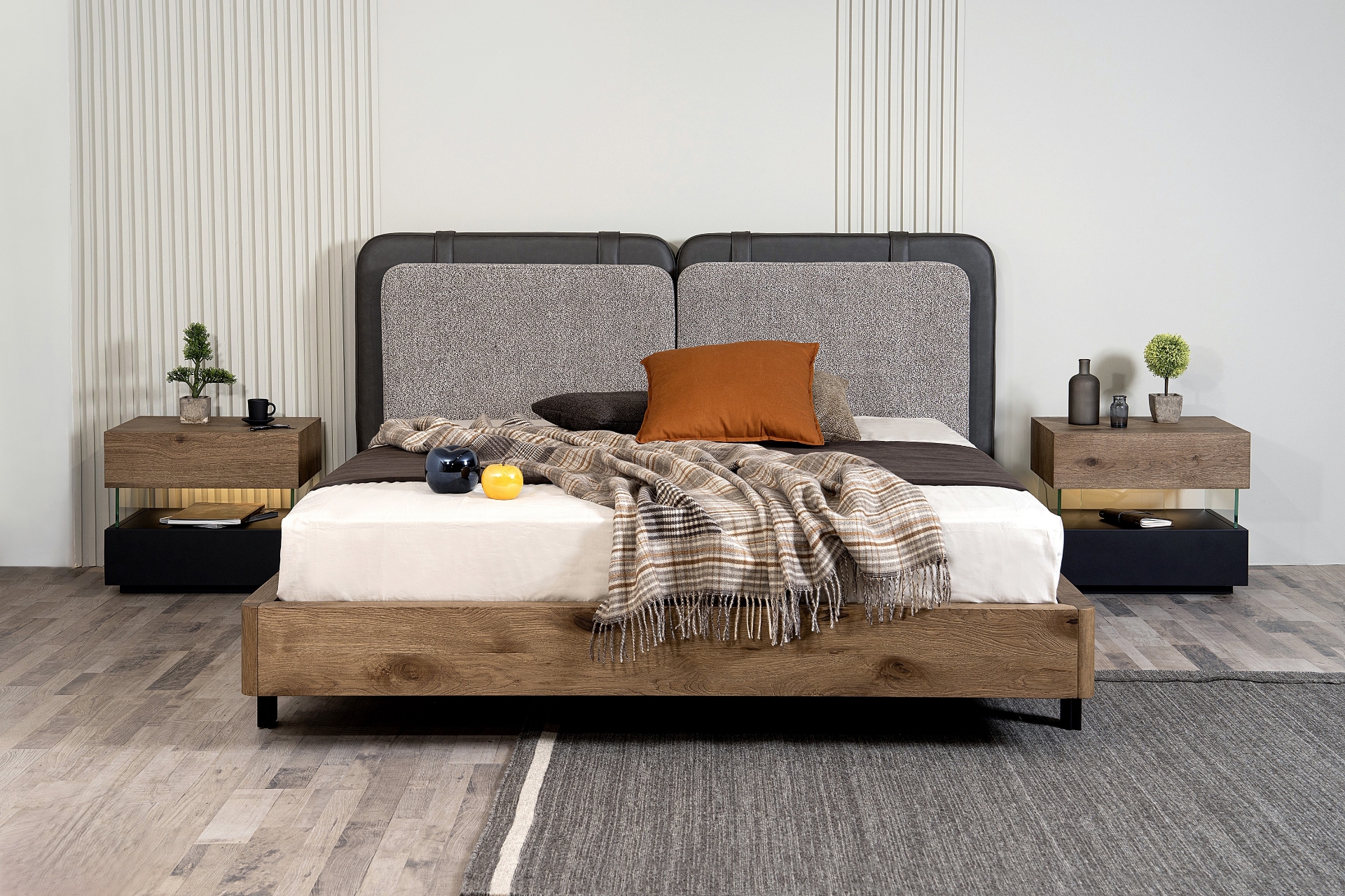 Αυτό το κρεβάτι παράγεται με ύφασμα περιμετρικά αλλά και με ξύλο. Επιλέγετε εσείς ποια έκδοση σας αρέσει πιο πολύ! Στο κεφαλάρι μπορείς να συνδυάσεις δυο χρώματα υφασμάτων!