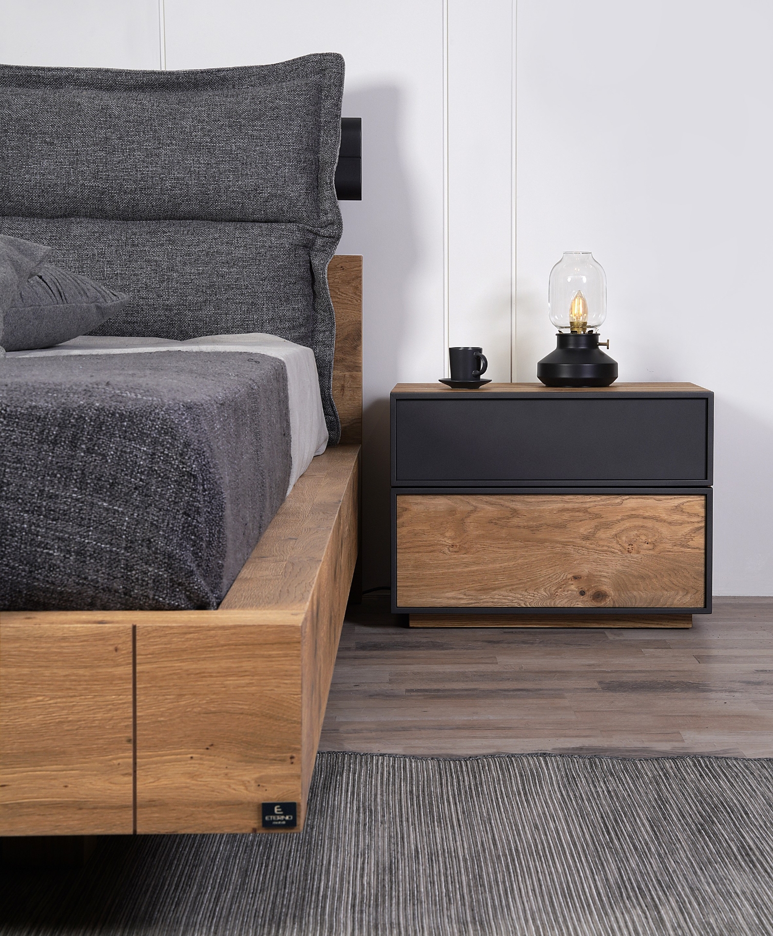 Το κομοδίνο Flexible ξεχωρίζει για την αρμονική ισορροπία μεταξύ ξύλου και λάκας, προσφέροντας διαχρονική κομψότητα και πρακτικότητα. Με δύο ευρύχωρα συρτάρια, αποτελεί ιδανική επιλογή για κάθε υπνοδωμάτιο, συνδυάζοντας φυσική υφή και σύγχρονη αισθητική.