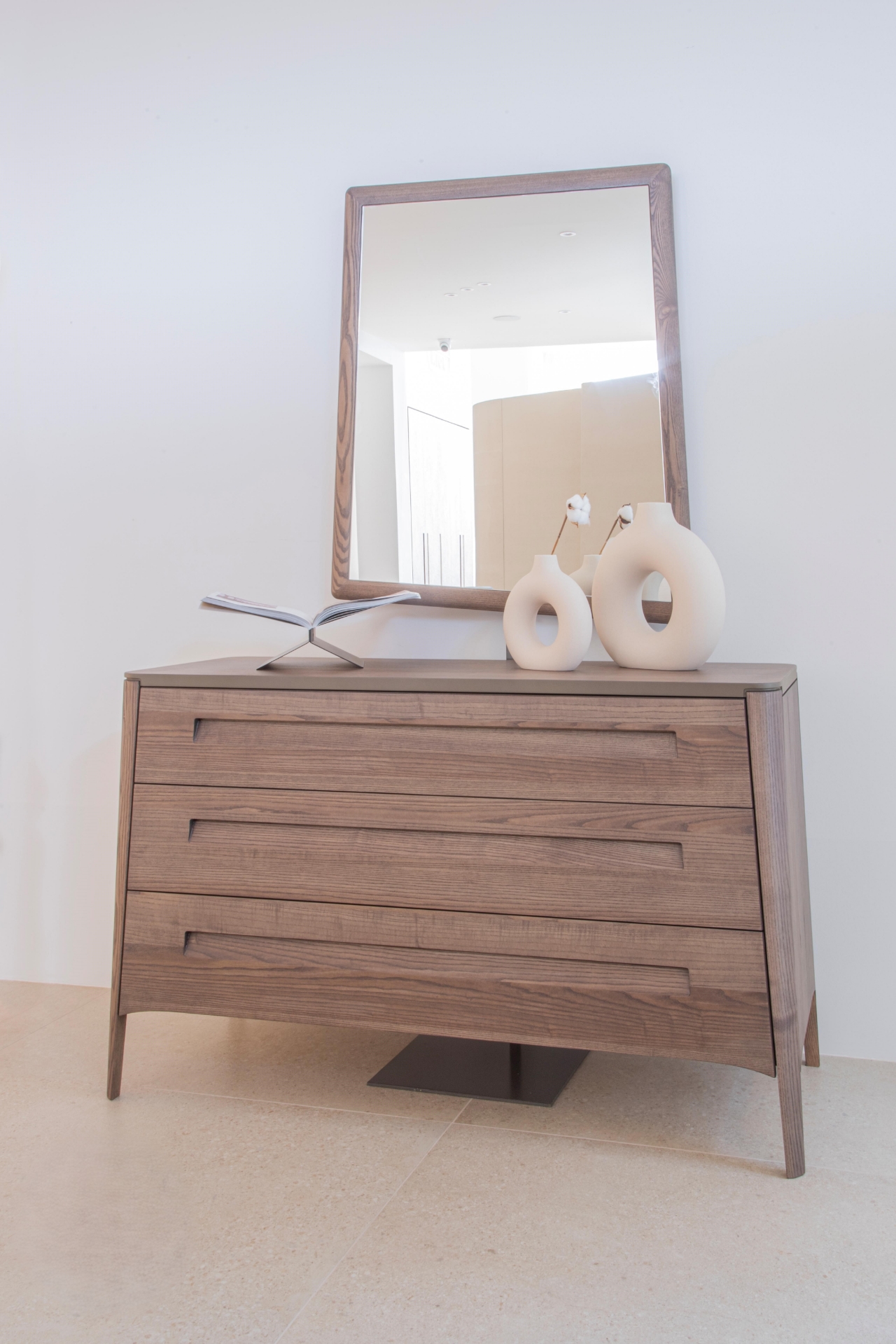 Συνδυάζεται αρμονικά με τα καινούργια κρεβάτια της σειράς, αλλά και με τον καθρέφτη Λάις, δημιουργώντας ένα ολοκληρωμένο και λειτουργικό υπνοδωμάτιο. Οι ευρύχωροι αποθηκευτικοί χώροι και η ποιοτική κατασκευή της την καθιστούν ιδανική για σύγχρονους χώρους με φυσική αισθητική.