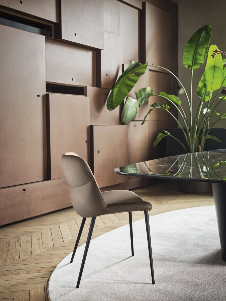 Η Calligaris Onda είναι μια μοντέρνα, κομψή και πρακτική καρέκλα τραπεζαρίας, σχεδιασμένη από το στούντιο AIR Design για να συνδυάζει λιτότητα με άνεση. Το όνομά της, εμπνευσμένο από τις κυματιστές γραμμές της θάλασσας, αποτυπώνεται αρμονικά στο καμπυλωτό σχήμα του καθίσματος, προσφέροντας εργονομία και αισθητική φινέτσα. Διαθέτει λεπτή μεταλλική βάση, που προσδίδει αίσθηση ελαφρότητας αλλά και σταθερότητας, καθιστώντας την ιδανική για μικρούς χώρους, μοντέρνες τραπεζαρίες, αλλά και επαγγελματικούς χώρους όπως γραφεία ή αίθουσες συσκέψεων. Το κάθισμα και η πλάτη της Onda επενδύονται με ύφασμα, τεχνόδερμα ή γνήσιο δέρμα, προσφέροντας πλήρη ελευθερία στην επιλογή υφής και χρώματος. Χάρη στην έλλειψη μπράτσων, η καρέκλα εξοικονομεί χώρο και διευκολύνει την κίνηση γύρω από το τραπέζι. Ιδανική για όσους αναζητούν έναν συνδυασμό μοντέρνου design, άνεσης και ευελιξίας στην καθημερινότητά τους.