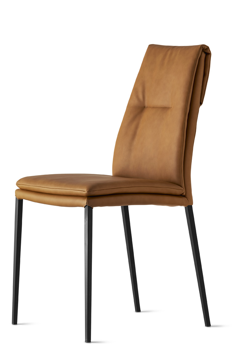 Τα 4 λεπτά αλλά στιβαρά μεταλλικά πόδια σε μαύρο χρώμα προσδίδουν δυναμική σταθερότητα, ενώ το κάθισμα με μοναδική, αρμονική σιλουέτα γίνεται ακόμη πιο άνετο χάρη στην επένδυση από τεχνόδερμα σε ταμπά (ανοιχτό καφέ) και το ενσωματωμένο μαξιλάρι.