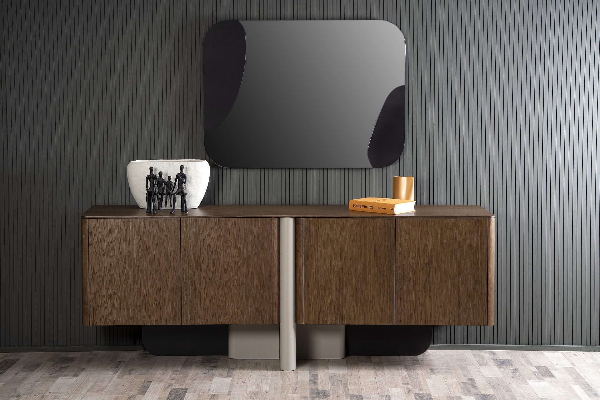 Ο μπουφές Epicure συνδυάζει τον μοντέρνο σχεδιασμό με την πρακτικότητα, δημιουργώντας ένα έπιπλο που ξεχωρίζει για τις στρογγυλεμένες γωνίες του και την εκλεπτυσμένη του γραμμή. Κατασκευασμένος από ξύλο δρυς σε συνδυασμό με λάκα, αποπνέει διαχρονική κομψότητα και υψηλή αισθητική. Με τέσσερις πόρτες και μεγάλη διάσταση 210 x 48 x 80 εκ., προσφέρει άνετο αποθηκευτικό χώρο, ενώ παράγεται και σε άλλες διαστάσεις ώστε να προσαρμόζεται στον κάθε χώρο. Ο Epicure αποτελεί ιδανική επιλογή για σαλόνια και τραπεζαρίες που αναζητούν ένα έπιπλο statement με μίνιμαλ και κομψό χαρακτήρα. Διαθέσιμος στο Adamopoulos Casa Ideale, στην Αθήνα.