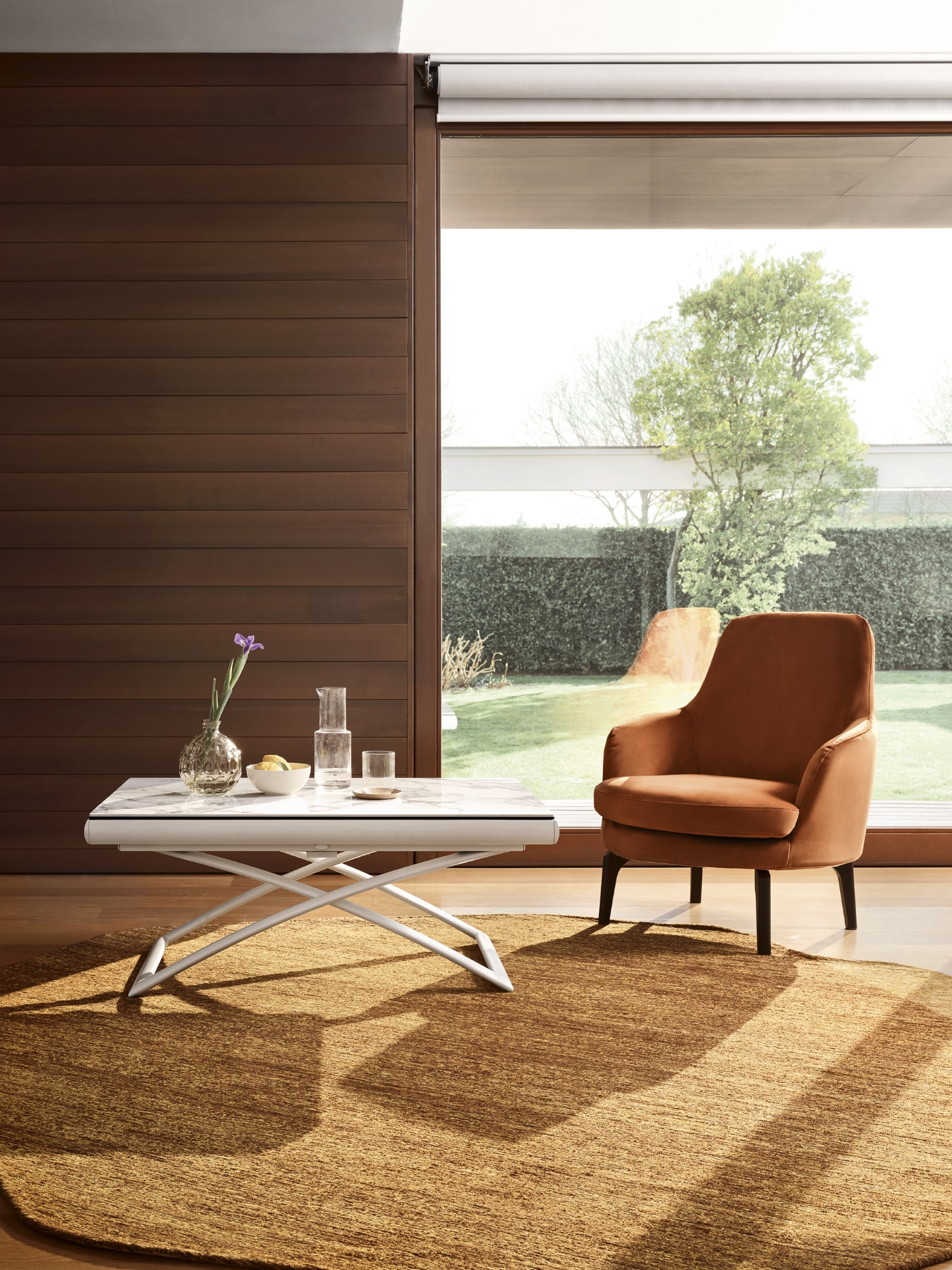 Το Dakota της Calligaris είναι ένα πολυμορφικό πτυσσόμενο τραπεζάκι σαλονιού, ιδανικό για στούντιο, διαμερίσματα ή μικρά living rooms, όπου ο χώρος χρειάζεται ευελιξία χωρίς να θυσιάζει το design. Με το πάτημα ενός κουμπιού στη μεταλλική βάση, το Dakota προσαρμόζεται σε 7 διαφορετικά ύψη (από 44 έως 75 cm), μεταμορφώνοντας το τραπεζάκι σαλονιού σε τραπεζαρία για 4 έως 6 άτομα μέσα σε λίγα δευτερόλεπτα. Η διπλή προέκταση που αποθηκεύεται διακριτικά επιτρέπει στο τραπέζι να επεκτείνεται έως 186,5 cm, ενώ η κεραμική επιφάνεια του προσδίδει πολυτελή εμφάνιση και αντοχή στη χρήση. Το Dakota διαθέτει πλαίσιο από οβάλ μεταλλικό σωλήνα, βαμμένο στο χρώμα της επιφάνειας, προσφέροντας αρμονία και στιβαρότητα. Πλέον, το μοντέλο διατίθεται σε μαύρα και καφέ κεραμικά με υφή νερών, χαρίζοντας έναν εκλεπτυσμένο, φυσικό χαρακτήρα στο χώρο. Με διαστάσεις 71,5 x 106 cm που επεκτείνονται σε 146 cm ή 186,5 cm, το Dakota Calligaris είναι η ιδανική επιλογή για όσους αναζητούν ευελιξία, πρακτικότητα και ιταλικό design με την εγγύηση του Adamopoulos Casa Ideale.