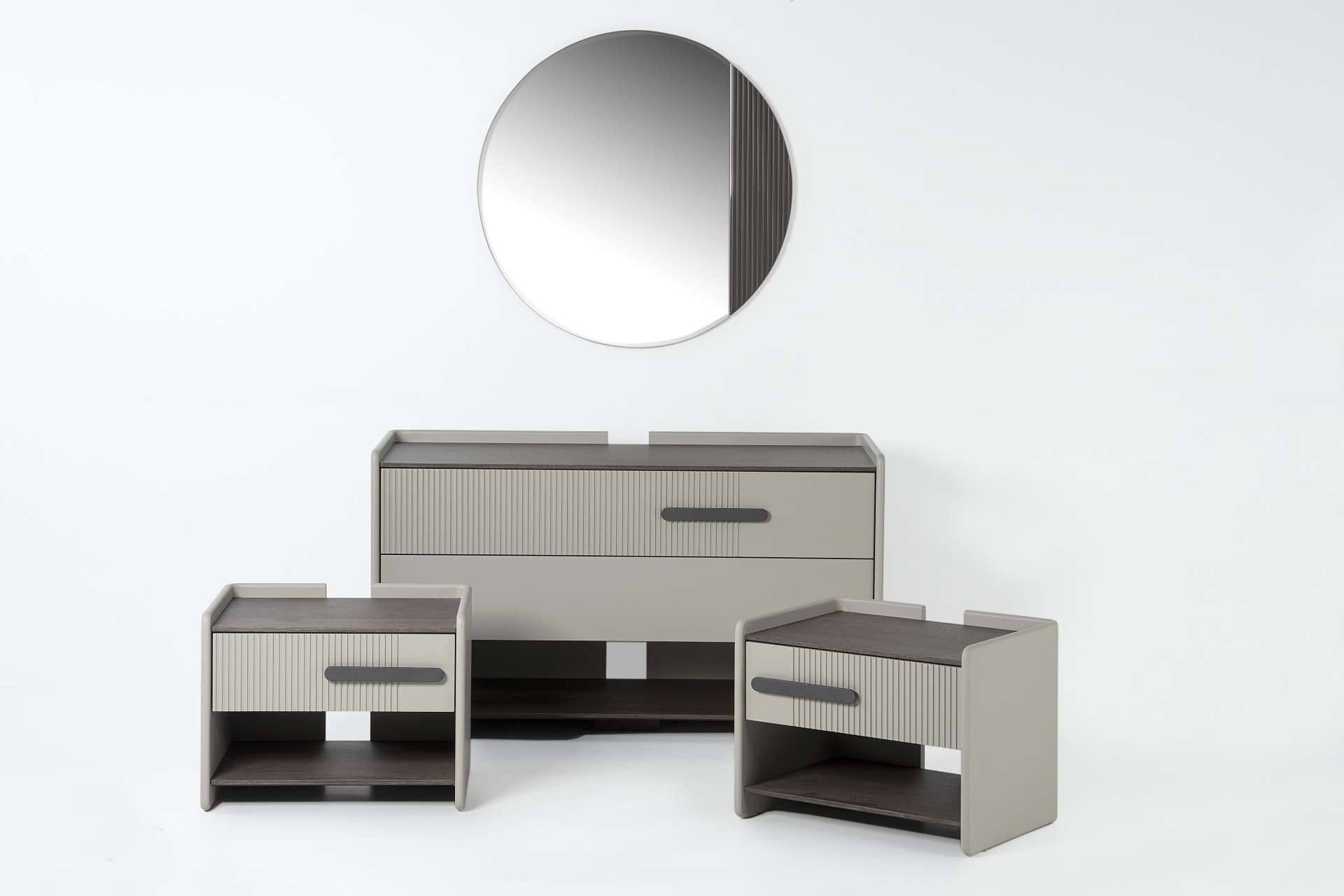 Συνδυάζεται άψογα με τα κομοδίνα της ίδιας σειράς, δημιουργώντας μια ενιαία, ισορροπημένη αισθητική στην κρεβατοκάμαρα.